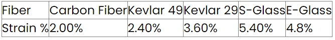 在壓縮方面,凱夫拉纖維比碳纖維或玻璃纖維弱得多。重要的是,當(dāng)受到側(cè)向打擊時,凱夫拉纖維更容易破裂,從而導(dǎo)致纖維產(chǎn)生壓縮應(yīng)變。這并不是說不應(yīng)使用凱夫拉纖維,而是說應(yīng)采用足以滿足結(jié)構(gòu)可能出現(xiàn)的需求的層結(jié)構(gòu)進(jìn)行設(shè)計。